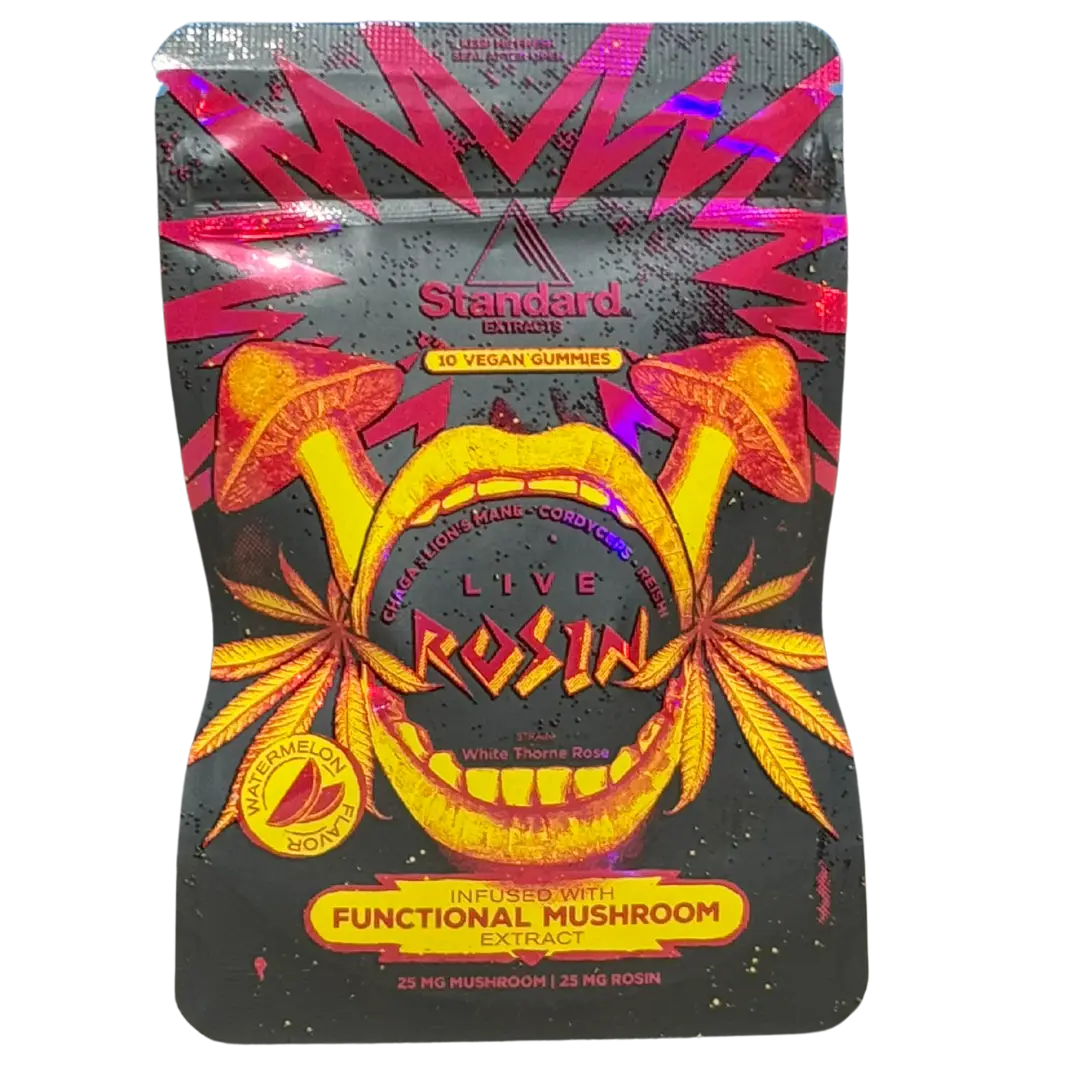 • Full-spectrum cannabis extract with live rosin, delivering a pure, terpene-rich edible experience.